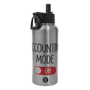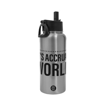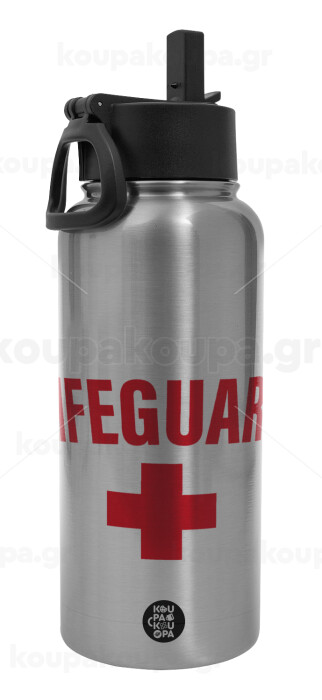 Lifeguard, Μεταλλικό παγούρι θερμός Silver με καλαμάκι και χερούλι (Stainless steel), διπλού τοιχώματος, 950ml