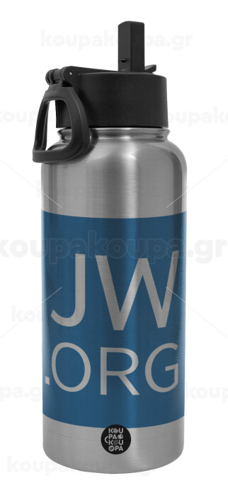 JW.ORG, Μεταλλικό παγούρι θερμός Silver με καλαμάκι και χερούλι (Stainless steel), διπλού τοιχώματος, 950ml