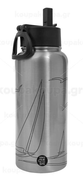 Ιστιοπλοΐα Sailing, Μεταλλικό παγούρι θερμός Silver με καλαμάκι και χερούλι (Stainless steel), διπλού τοιχώματος, 950ml