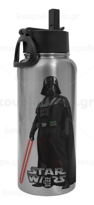 Darth vader, Μεταλλικό παγούρι θερμός Silver με καλαμάκι και χερούλι (Stainless steel), διπλού τοιχώματος, 950ml