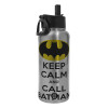 KEEP CALM & Call BATMAN, Μεταλλικό παγούρι θερμός Silver με καλαμάκι και χερούλι (Stainless steel), διπλού τοιχώματος, 950ml