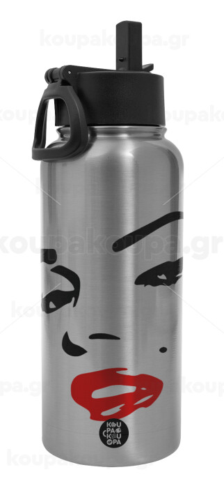 Marilyn Monroe, Μεταλλικό παγούρι θερμός Silver με καλαμάκι και χερούλι (Stainless steel), διπλού τοιχώματος, 950ml