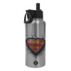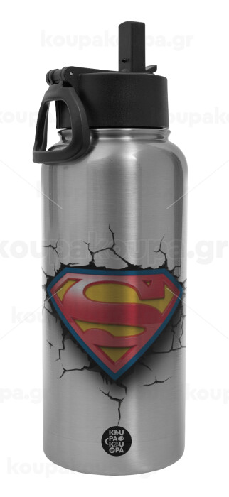 Superman cracked, Μεταλλικό παγούρι θερμός Silver με καλαμάκι και χερούλι (Stainless steel), διπλού τοιχώματος, 950ml