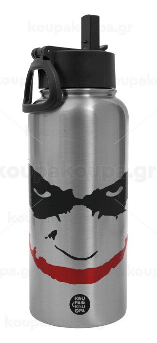 The joker smile, Μεταλλικό παγούρι θερμός Silver με καλαμάκι και χερούλι (Stainless steel), διπλού τοιχώματος, 950ml