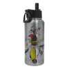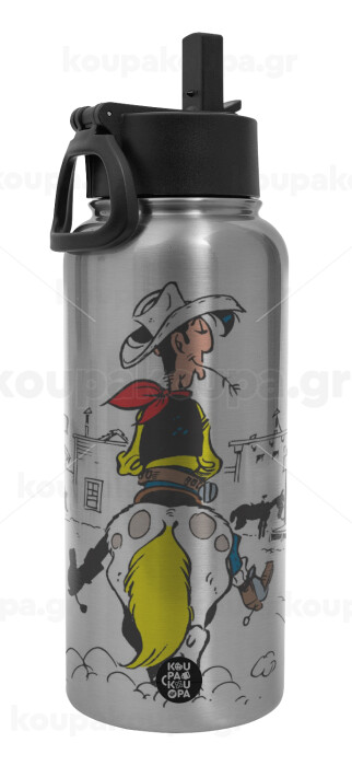 Λούκυ Λουκ comic, Μεταλλικό παγούρι θερμός Silver με καλαμάκι και χερούλι (Stainless steel), διπλού τοιχώματος, 950ml