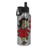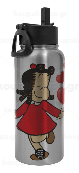 Η μικρή Λουλού, Μεταλλικό παγούρι θερμός Silver με καλαμάκι και χερούλι (Stainless steel), διπλού τοιχώματος, 950ml