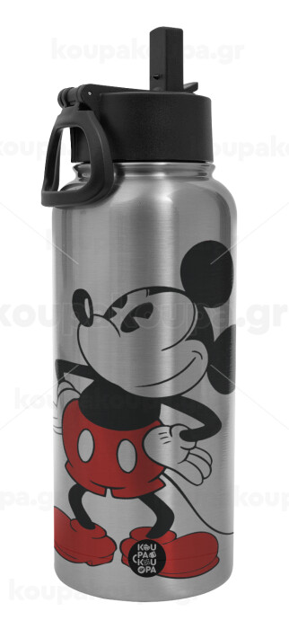 Mickey Classic, Μεταλλικό παγούρι θερμός Silver με καλαμάκι και χερούλι (Stainless steel), διπλού τοιχώματος, 950ml
