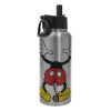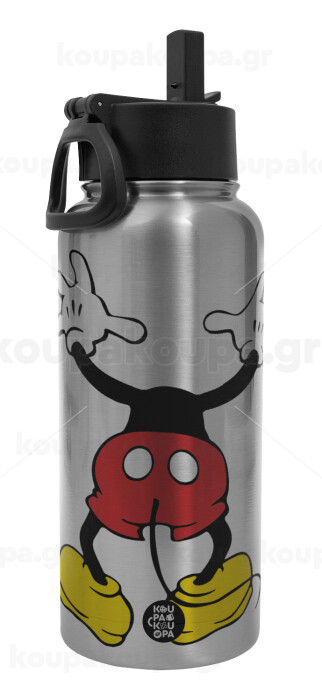 Mickey hide..., Μεταλλικό παγούρι θερμός Silver με καλαμάκι και χερούλι (Stainless steel), διπλού τοιχώματος, 950ml