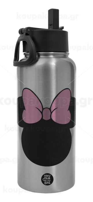 mouse girl, Μεταλλικό παγούρι θερμός Silver με καλαμάκι και χερούλι (Stainless steel), διπλού τοιχώματος, 950ml
