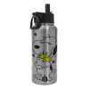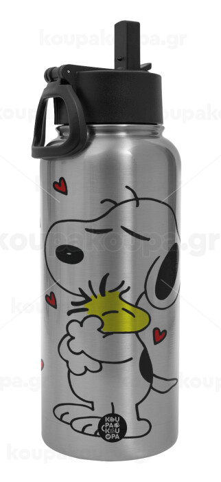 Snoopy Love, Μεταλλικό παγούρι θερμός Silver με καλαμάκι και χερούλι (Stainless steel), διπλού τοιχώματος, 950ml