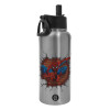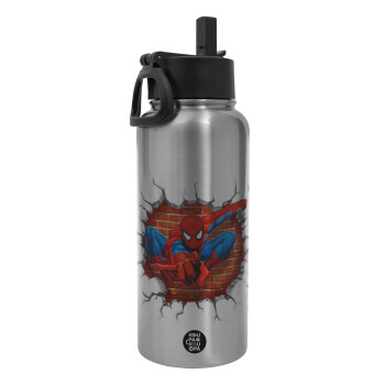 Spiderman wall, Μεταλλικό παγούρι θερμός Silver με καλαμάκι και χερούλι (Stainless steel), διπλού τοιχώματος, 950ml