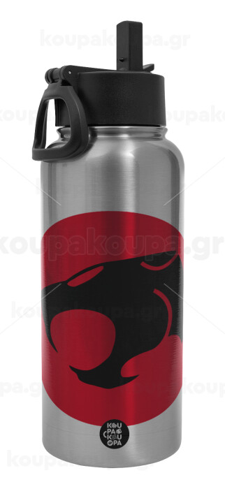 Thundercats, Μεταλλικό παγούρι θερμός Silver με καλαμάκι και χερούλι (Stainless steel), διπλού τοιχώματος, 950ml