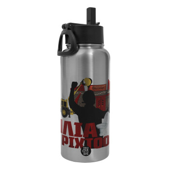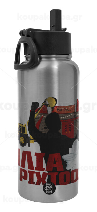 Ηλία ρίχτο!, Μεταλλικό παγούρι θερμός Silver με καλαμάκι και χερούλι (Stainless steel), διπλού τοιχώματος, 950ml