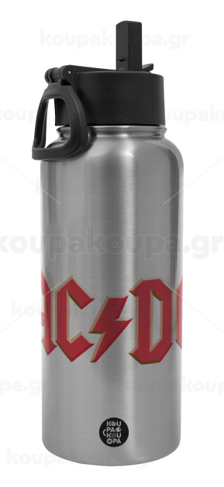 AC/DC, Μεταλλικό παγούρι θερμός Silver με καλαμάκι και χερούλι (Stainless steel), διπλού τοιχώματος, 950ml