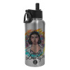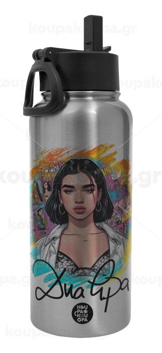 Dua lipa, Μεταλλικό παγούρι θερμός Silver με καλαμάκι και χερούλι (Stainless steel), διπλού τοιχώματος, 950ml