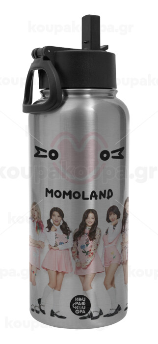 Momoland pink, Μεταλλικό παγούρι θερμός Silver με καλαμάκι και χερούλι (Stainless steel), διπλού τοιχώματος, 950ml