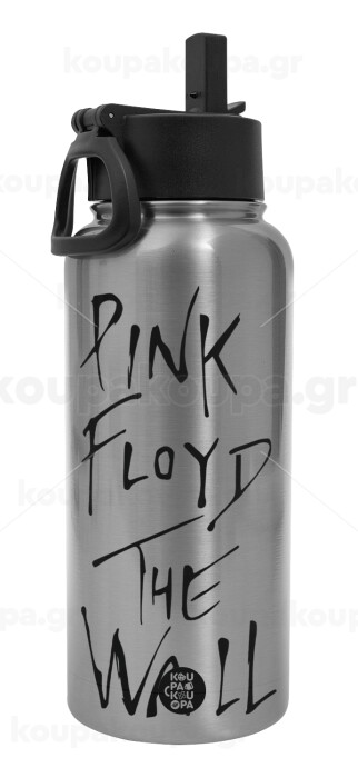 Pink Floyd, The Wall, Μεταλλικό παγούρι θερμός Silver με καλαμάκι και χερούλι (Stainless steel), διπλού τοιχώματος, 950ml