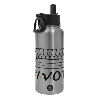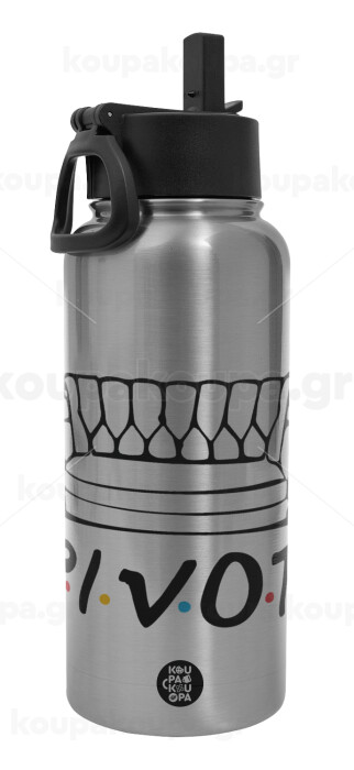Friends Pivot, Μεταλλικό παγούρι θερμός Silver με καλαμάκι και χερούλι (Stainless steel), διπλού τοιχώματος, 950ml