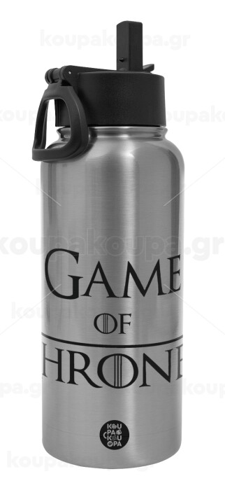 Game of Thrones, Μεταλλικό παγούρι θερμός Silver με καλαμάκι και χερούλι (Stainless steel), διπλού τοιχώματος, 950ml