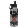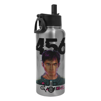 Squid game 456 Gi-Hun, Μεταλλικό παγούρι θερμός Silver με καλαμάκι και χερούλι (Stainless steel), διπλού τοιχώματος, 950ml