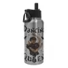 Wednesday Addams Dance, Μεταλλικό παγούρι θερμός Silver με καλαμάκι και χερούλι (Stainless steel), διπλού τοιχώματος, 950ml