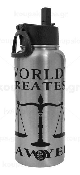 World's greatest Lawyer, Μεταλλικό παγούρι θερμός Silver με καλαμάκι και χερούλι (Stainless steel), διπλού τοιχώματος, 950ml
