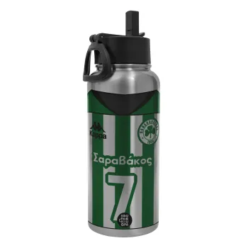 Παναθηναϊκός εμφάνιση, Μεταλλικό παγούρι θερμός Silver με καλαμάκι και χερούλι (Stainless steel), διπλού τοιχώματος, 950ml
