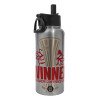 Europa Conference League WINNER, Μεταλλικό παγούρι θερμός Silver με καλαμάκι και χερούλι (Stainless steel), διπλού τοιχώματος, 950ml