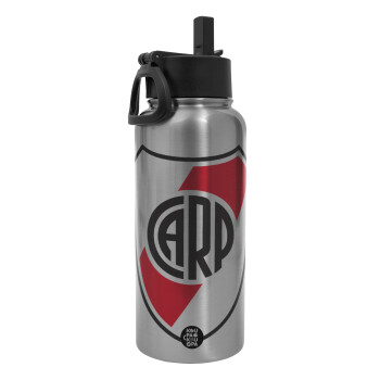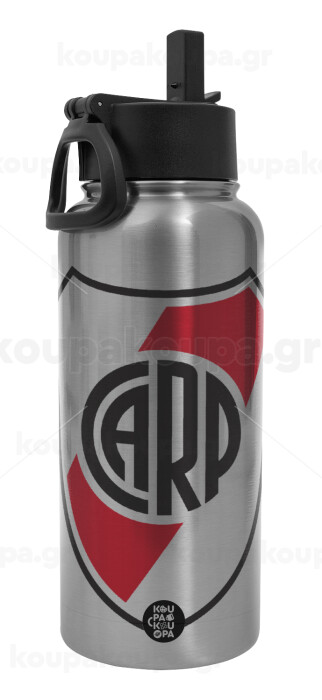 River Plate, Μεταλλικό παγούρι θερμός Silver με καλαμάκι και χερούλι (Stainless steel), διπλού τοιχώματος, 950ml