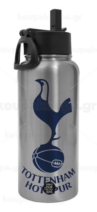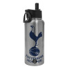 Tottenham Hotspur, Μεταλλικό παγούρι θερμός Silver με καλαμάκι και χερούλι (Stainless steel), διπλού τοιχώματος, 950ml