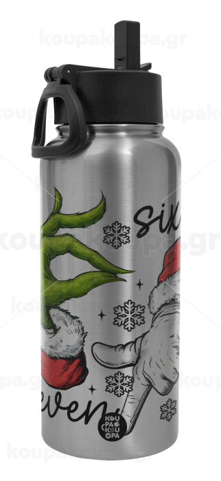 Christmas Meme SIX SEVEN (67), Μεταλλικό παγούρι θερμός Silver με καλαμάκι και χερούλι (Stainless steel), διπλού τοιχώματος, 950ml