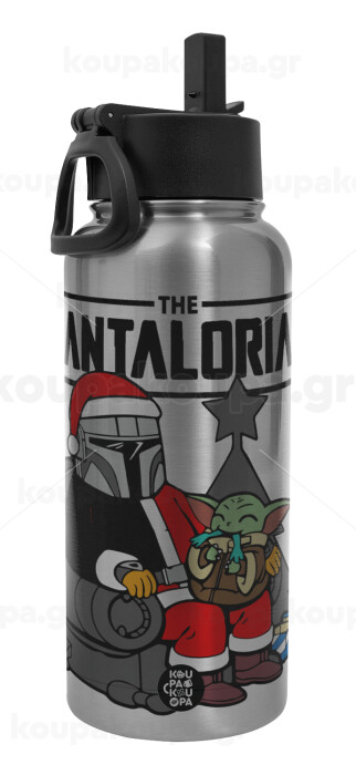 Star Wars Santalorian, Μεταλλικό παγούρι θερμός Silver με καλαμάκι και χερούλι (Stainless steel), διπλού τοιχώματος, 950ml