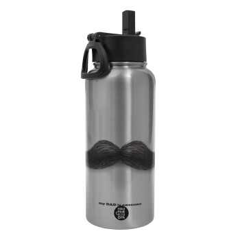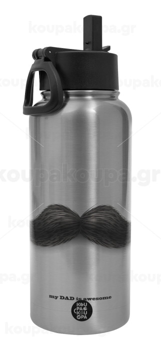 Ο καλύτερος μουστακαλής του κόσμου!!!, Μεταλλικό παγούρι θερμός Silver με καλαμάκι και χερούλι (Stainless steel), διπλού τοιχώματος, 950ml