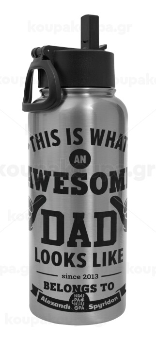 This is what an Awesome DAD looks like, Μεταλλικό παγούρι θερμός Silver με καλαμάκι και χερούλι (Stainless steel), διπλού τοιχώματος, 950ml