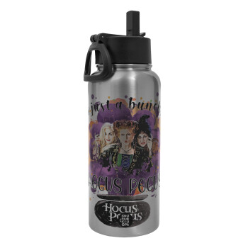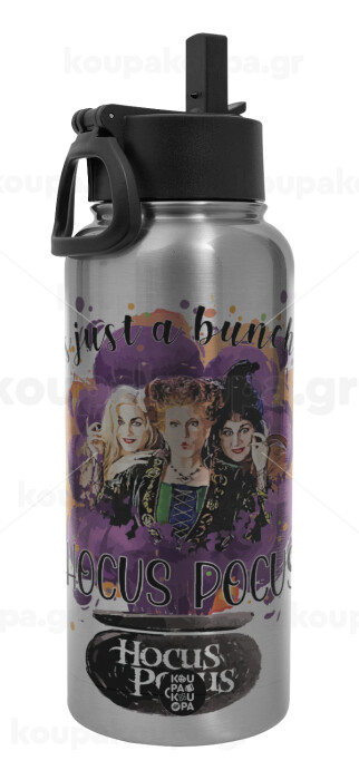 Hocus Pocus, Μεταλλικό παγούρι θερμός Silver με καλαμάκι και χερούλι (Stainless steel), διπλού τοιχώματος, 950ml