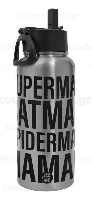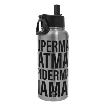 MAMAN, Μεταλλικό παγούρι θερμός Silver με καλαμάκι και χερούλι (Stainless steel), διπλού τοιχώματος, 950ml