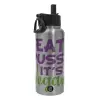 EAT pussy it's vegan, Μεταλλικό παγούρι θερμός Silver με καλαμάκι και χερούλι (Stainless steel), διπλού τοιχώματος, 950ml
