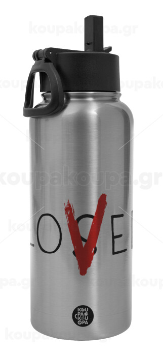 IT Lov(s)er, Μεταλλικό παγούρι θερμός Silver με καλαμάκι και χερούλι (Stainless steel), διπλού τοιχώματος, 950ml