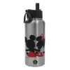 mickey and minnie hags, Μεταλλικό παγούρι θερμός Silver με καλαμάκι και χερούλι (Stainless steel), διπλού τοιχώματος, 950ml