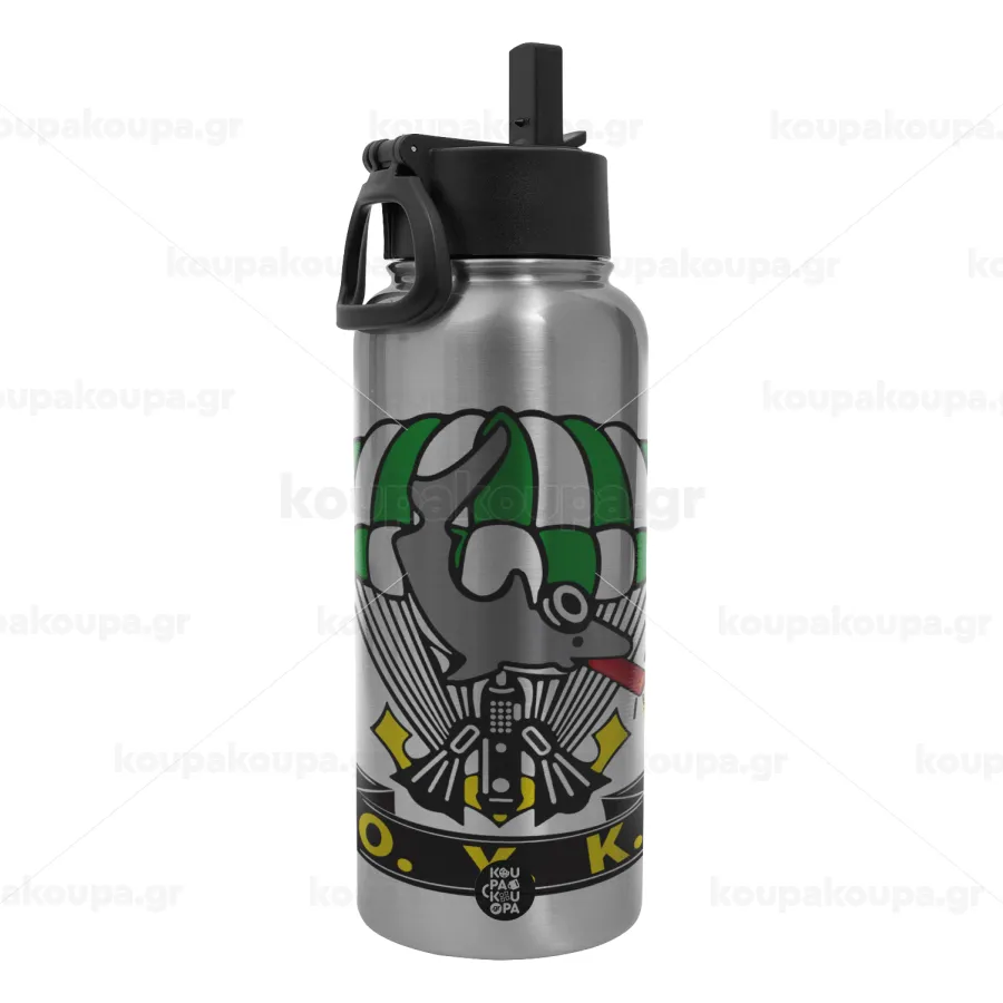 Ο.Υ.Κ., Μεταλλικό παγούρι θερμός Silver με καλαμάκι και χερούλι (Stainless steel), διπλού τοιχώματος, 950ml