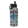 Daddy Shark (με ονόματα παιδικά), Μεταλλικό παγούρι θερμός Silver με καλαμάκι και χερούλι (Stainless steel), διπλού τοιχώματος, 950ml