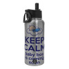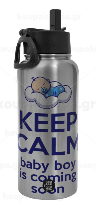 KEEP CALM baby boy is coming soon!!!, Μεταλλικό παγούρι θερμός Silver με καλαμάκι και χερούλι (Stainless steel), διπλού τοιχώματος, 950ml