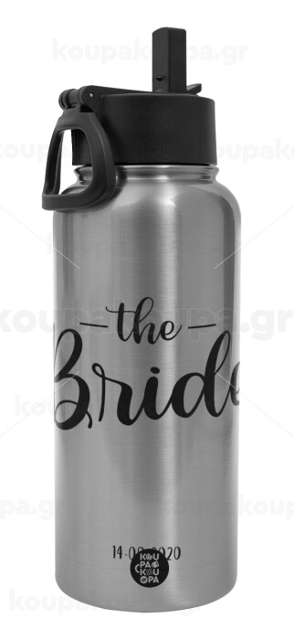 Groom & Bride (Bride), Μεταλλικό παγούρι θερμός Silver με καλαμάκι και χερούλι (Stainless steel), διπλού τοιχώματος, 950ml