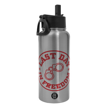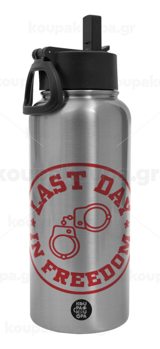 Last day freedom, Μεταλλικό παγούρι θερμός Silver με καλαμάκι και χερούλι (Stainless steel), διπλού τοιχώματος, 950ml
