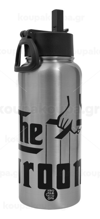 The Groom, Μεταλλικό παγούρι θερμός Silver με καλαμάκι και χερούλι (Stainless steel), διπλού τοιχώματος, 950ml
