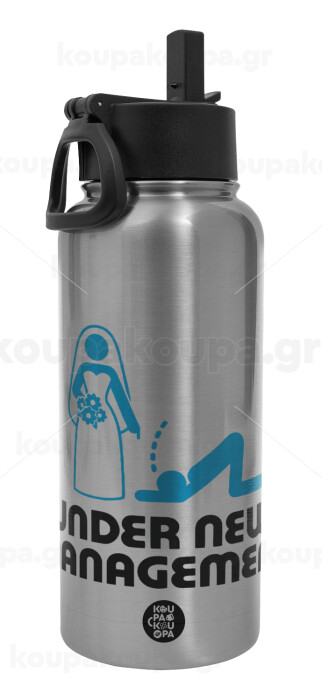 Under new Management, Μεταλλικό παγούρι θερμός Silver με καλαμάκι και χερούλι (Stainless steel), διπλού τοιχώματος, 950ml