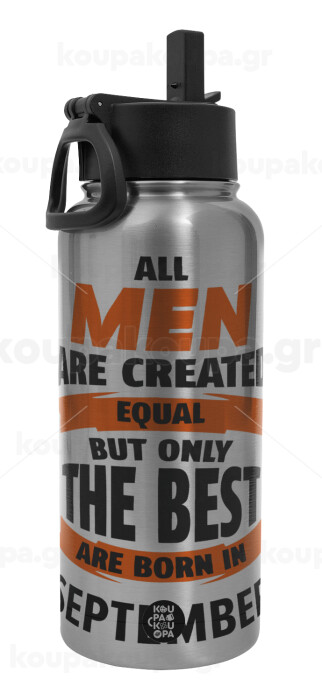 All men are created equal but only the best are born in September, Μεταλλικό παγούρι θερμός Silver με καλαμάκι και χερούλι (Stainless steel), διπλού τοιχώματος, 950ml