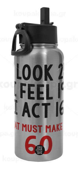 I look, i feel, i act..., Μεταλλικό παγούρι θερμός Silver με καλαμάκι και χερούλι (Stainless steel), διπλού τοιχώματος, 950ml