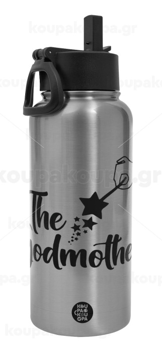 Fairy God Mother, Μεταλλικό παγούρι θερμός Silver με καλαμάκι και χερούλι (Stainless steel), διπλού τοιχώματος, 950ml