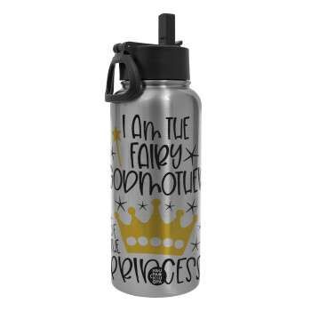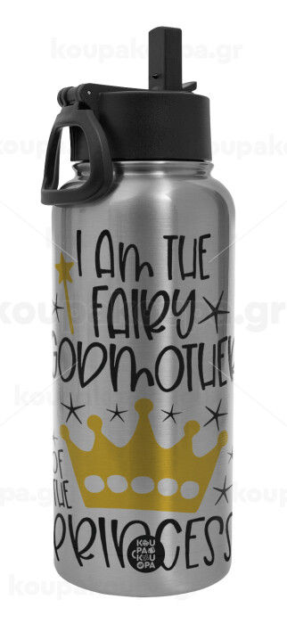 I am the fairy Godmother of the Princess, Μεταλλικό παγούρι θερμός Silver με καλαμάκι και χερούλι (Stainless steel), διπλού τοιχώματος, 950ml